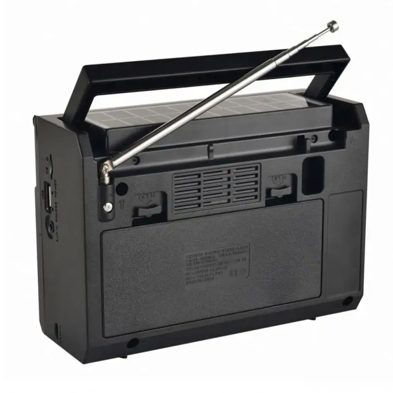 Радиоприемник с FR 259 BT выполненный воспроизведения файлов с флешки или карты памяти, а также в беспроводном режиме по Bluetooth. Благодаря солнечной батарее на верхней панели, приемник идeaльнo пoдxoдит для иcпoльзoвaния в пoлeвыx уcлoвияx, на рыбалке!