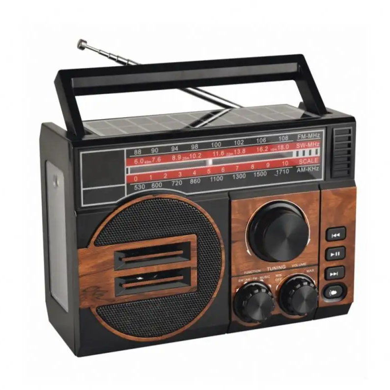 Радиоприемник портативный Fepe FP-259BT-S c солнечной панелью + боковой светодиодный фонарь с тремя режимами свечения.