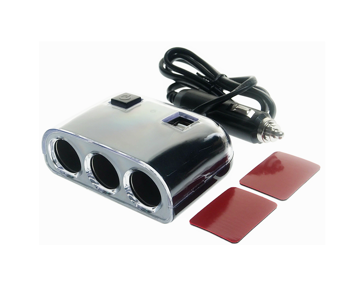 Разветвитель в прикуриватель OLESSON 1505 на 3 разъема, представляет собой ус-во разнесенное на 3 блока (один блок в прикуриватель с USB разъемом, второй блок из двух гнезд стандартной авто розетки, который можно вынести например на панель) Имеется два USB выхода. Разветвитель на 3 прикуривателя - это современное устройство конвертирует 1 гнездо прикуривателя в 3 гнезда и 2 гнездо USB. Стабильная мощность в 120 Вт, позволяет подключить несколько устройств одновременно. USB порт, мощностью 5V/1200 mA, пригоден для подключения GPS, телефонов, смартфонов, планшетов, КПК и прочих гаджетов. А с LED подсветкой Вы всегда увидите где лежит тройник и куда подсоединять USB шнур или зарядное устройство. Входное напряжение: 12 ~ 24V