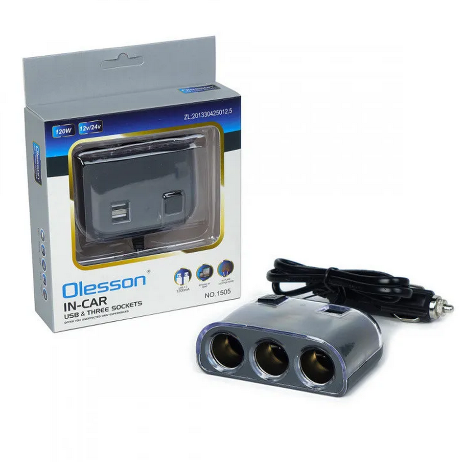 Комплектация: Разветвитель авто Olesson NO.1505 (2USB /3розетки). упаковка.