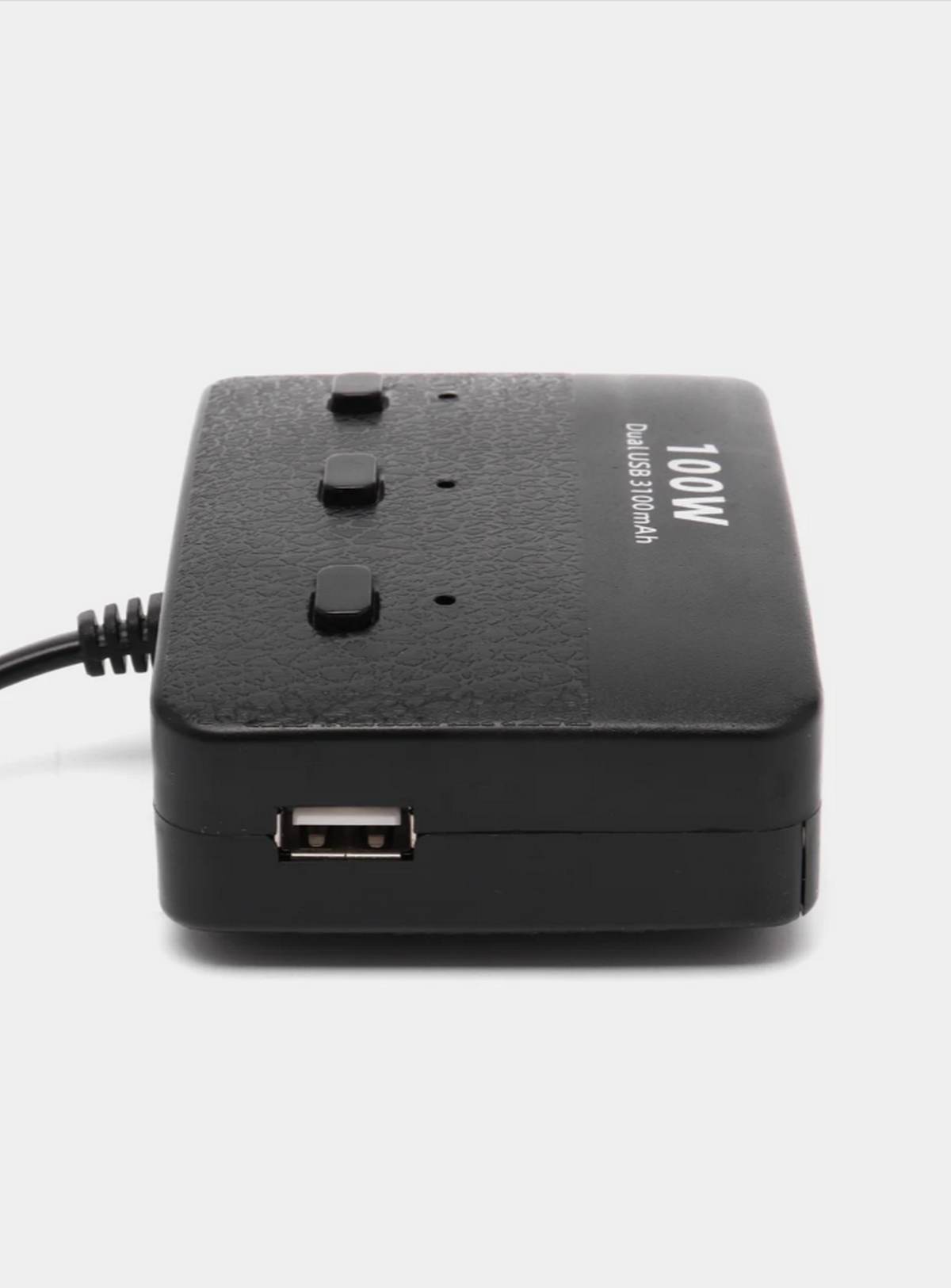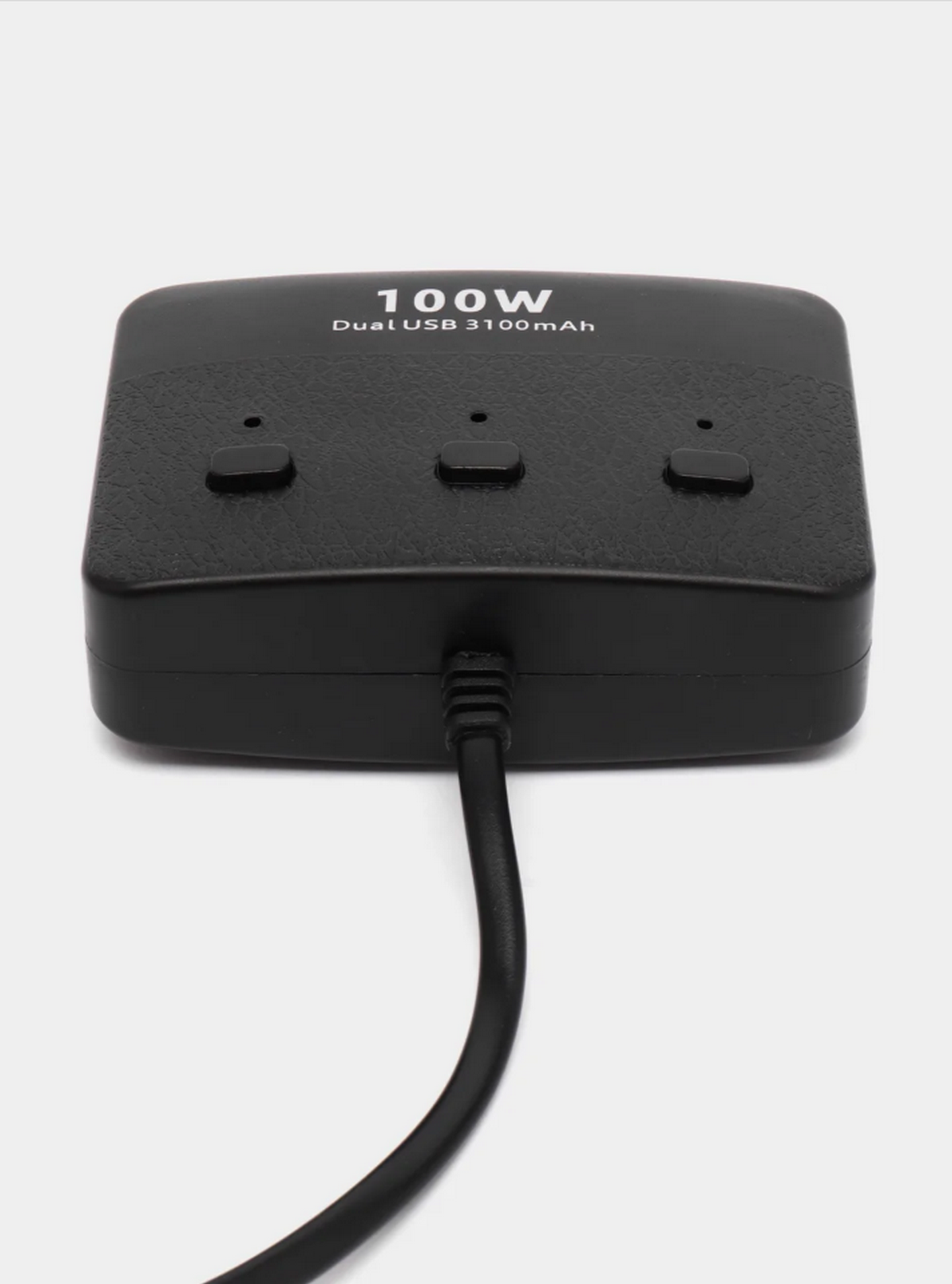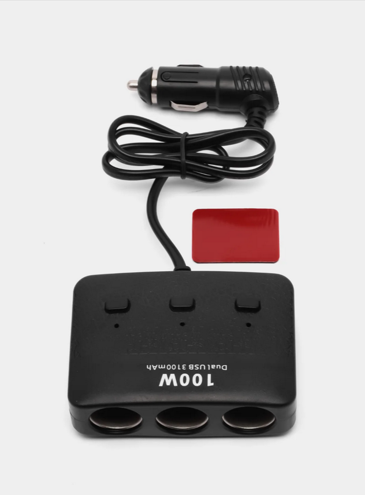 Разветвитель авто Olesson (2USB/3 розетки, 100 Вт) — практичное решение для подключения нескольких устройств в автомобиле; оснащён тремя розетками прикуривателя и двумя USB‑портами, поддерживает входное напряжение DC 12–24 В, общая выходная мощность — 100 Вт, USB‑выходы обеспечивают ток до 1,2 А при 5 В; компактный корпус с предохранителем защищает подключённые устройства от перегрузок и коротких замыканий, длина шнура — 60 см; подходит для зарядки смартфонов, питания навигаторов, видеорегистраторов и других автомобильных аксессуаров.