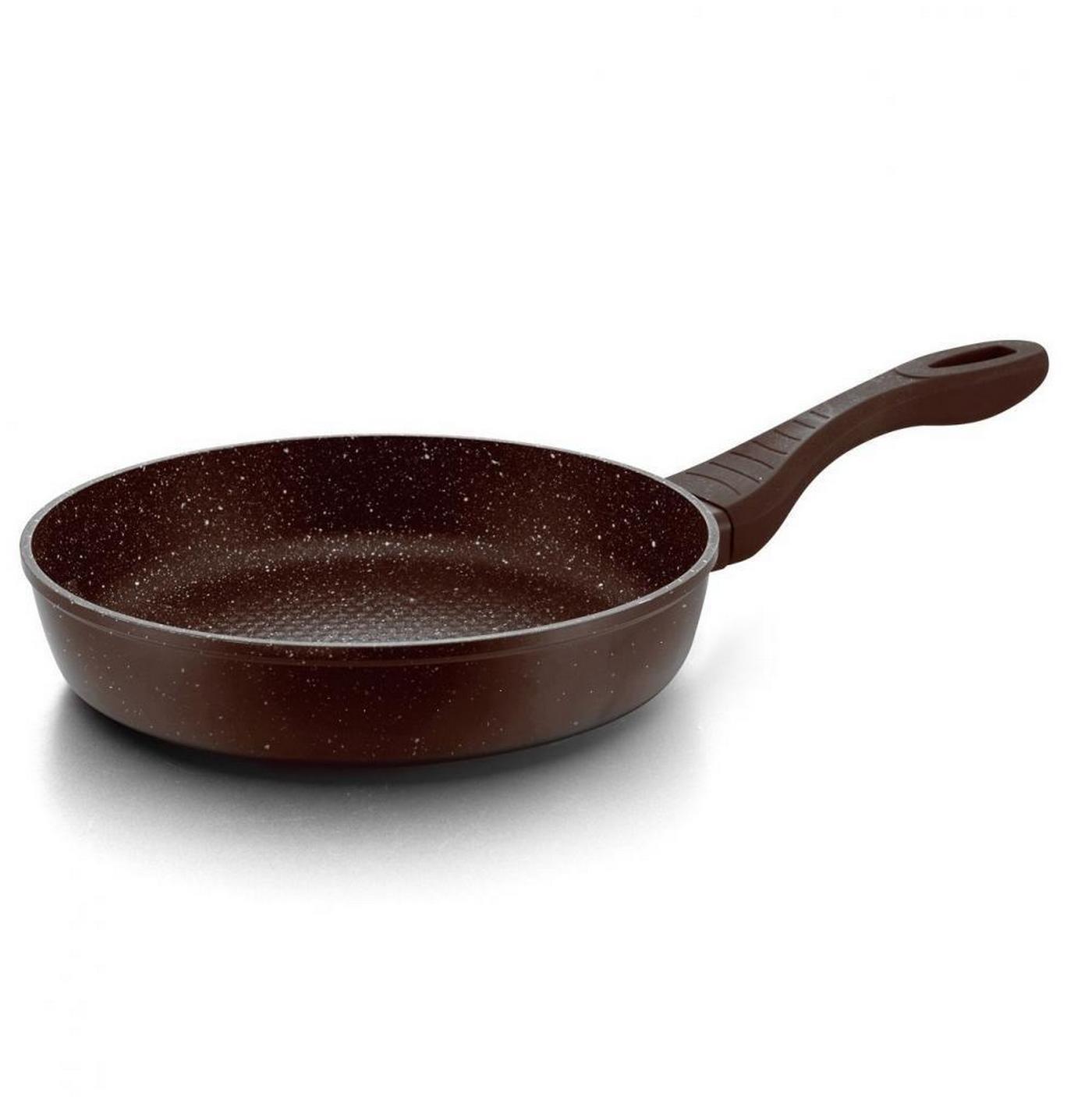 Подходит для всех типов плит: готовьте на газовых, электрических, стеклокерамических и индукционных плитах. Можно мыть в посудомоечной машине. Посуда представлена в коричневом цвете с эффектом мрамора. Модель обладает классическим дизайном, подходящим к любой кухне. Сковородка может послужить приятным подарком на любой праздник.