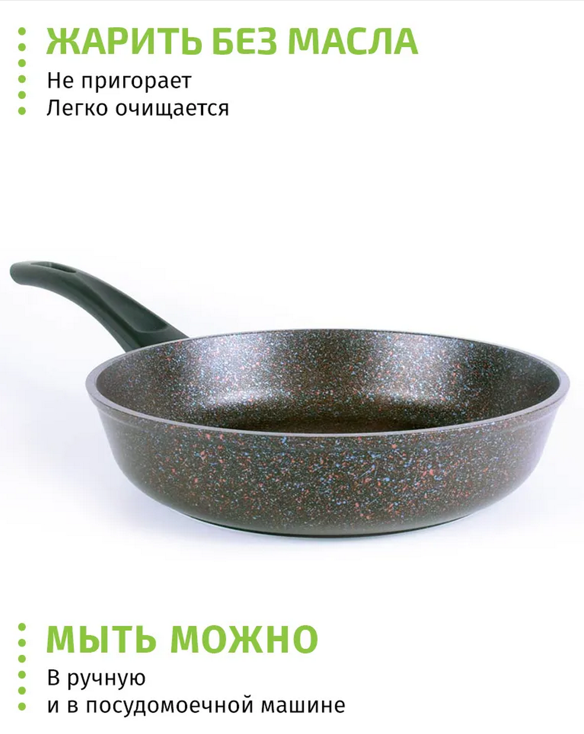 Можно мыть в посудомоечной машине. Утолщенное дно уберегает продукты от сгорания, дает более равномерное распределение тепла, аккумулирует тепло и не дает пище остывать долгое время. При таком подходе Вы можете выключать плиту заранее, а пища дойдет естественным способом и ее не надо разогревать несколько раз. Таким образом достигается экономия электроэнергии. Специальный материал ручки soft-touch бакелит. Толщина стенок 3 мм. Дна 5 мм. Высота 60 мм.