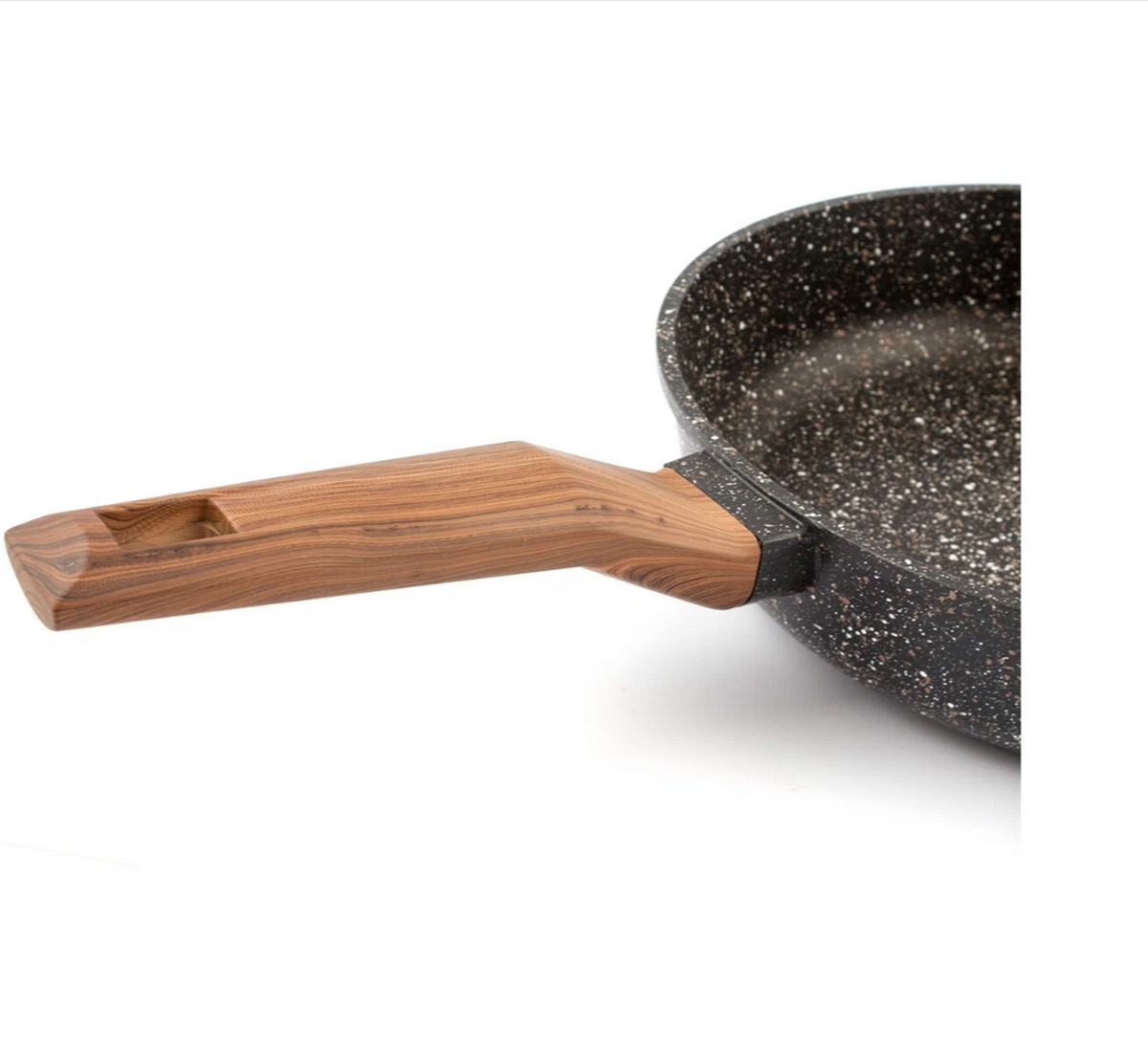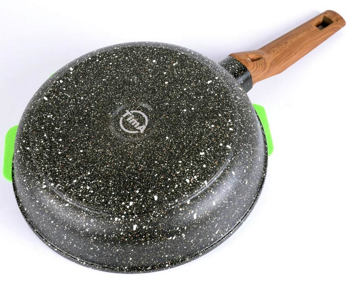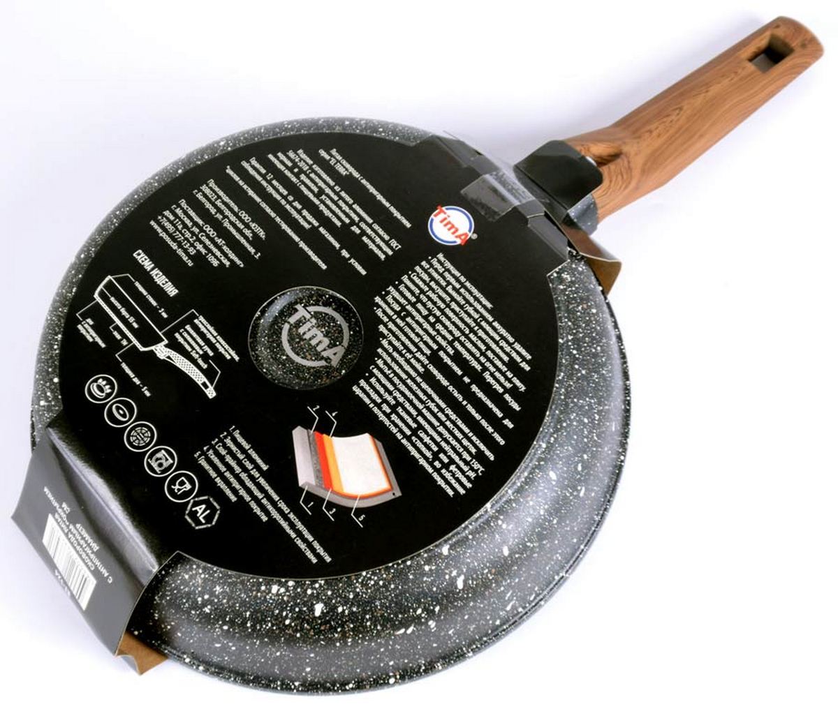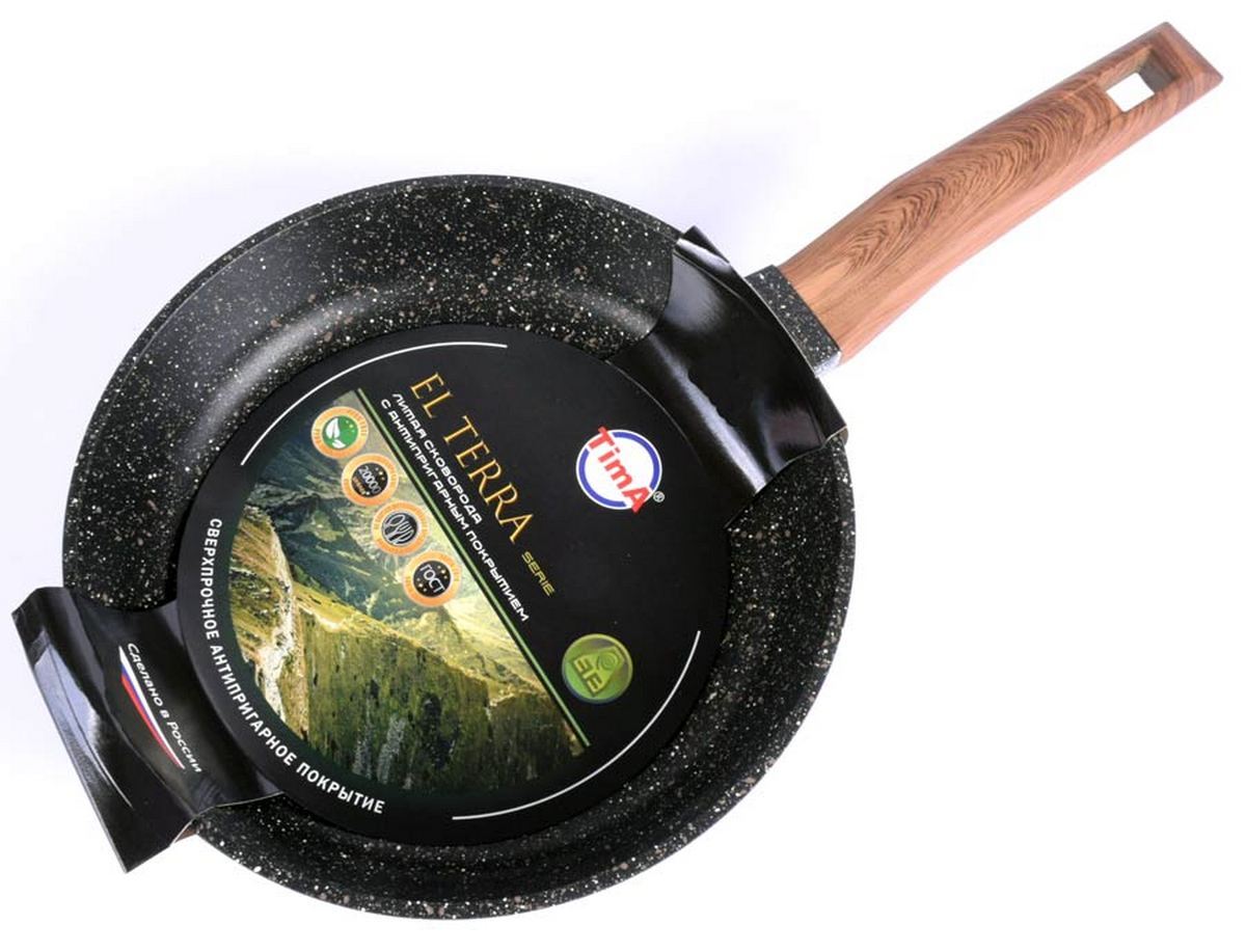 Сковороды TIMA серии El Terra изготавливаются в России из литого алюминия согласно ГОСТ56674-2018, благодаря чему обладают надёжным экологичным 5-и слойным каменным покрытием. Согласно тестированию производителя, ресурс данного покрытия составляет до 20 000 циклов приготовления пищи! Покрытие не боится использования металлических аксессуаров и считается экологически безопасным, т.к. не содержит PFOA. TimA El Terra подходит для использования в посудомоечной машине с нейтральным pH. Ручка сковороды выполнена из материала soft touch бакелит, стилизована под дерево. Такая ручка словно прорезинена, приятная на ощупь, надёжно держится даже в мокрых руках, не выскользнет. Эта модель подходит для стеклокерамических, газовых и электрических плит. Толщина стенок 3 мм. Толщина дна 5 мм. Высота борта 60 мм.