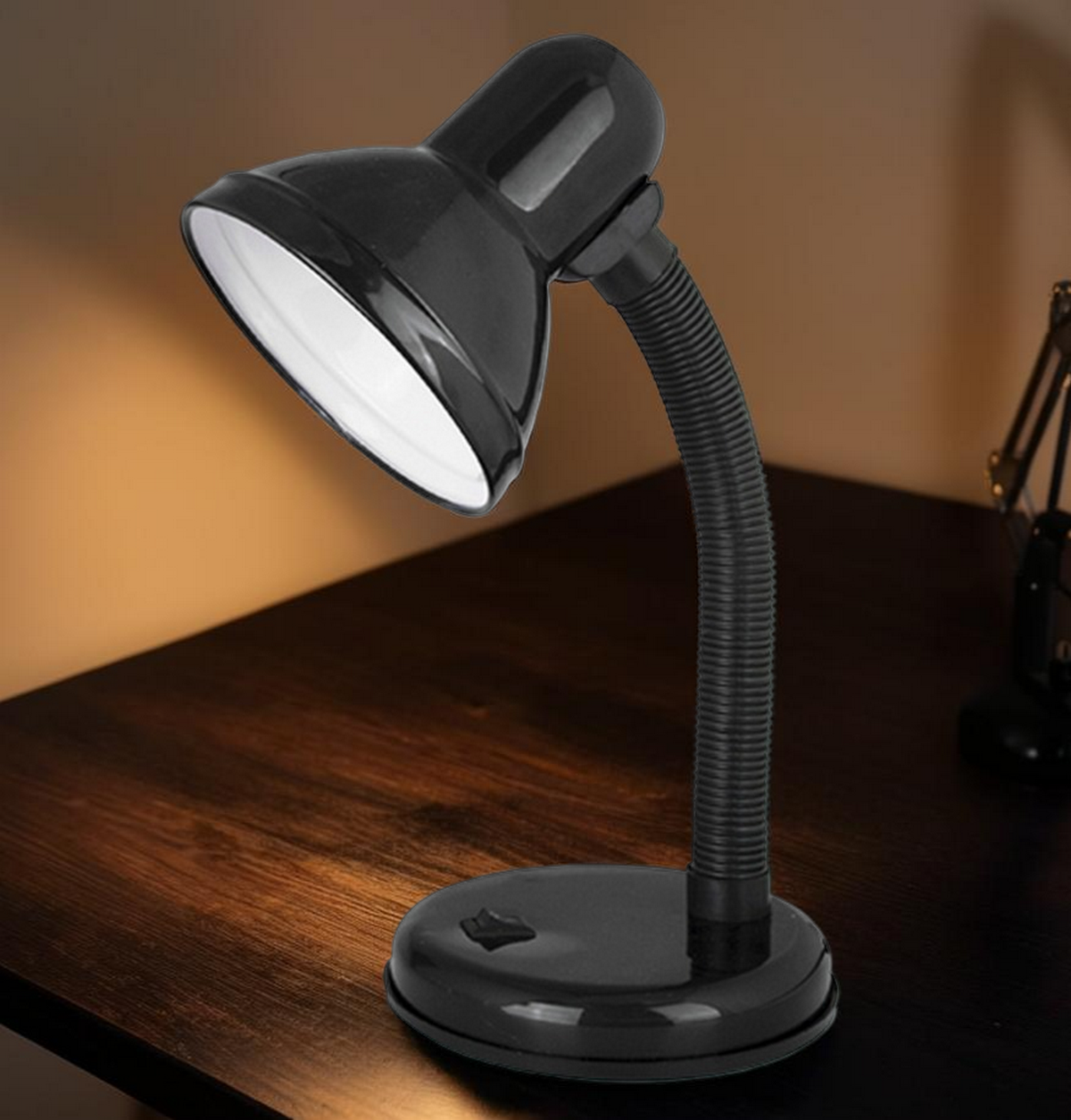 Светильник настольный Ultraflash UF‑301P C02 с питанием от сети 220 В — практичное решение для локального освещения рабочих и бытовых зон; имеет регулируемую гибкую ножку.