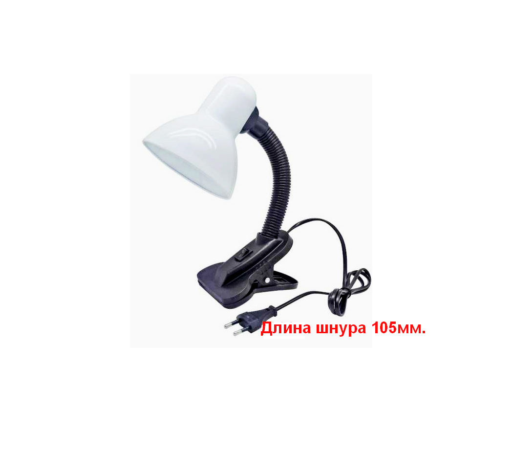 Настольный светильник с прищепкой, 230В, 60Вт, E27, ЛОН выполнен из прочного металла, имеет гибкую стойку. Предназначен для организации локального освещения для работы или отдыха дома или в офисе так же для выращивания рассады. Патрон Е27 предназначен для работы с лампами накаливания, энергосберегающей или светодиодной, максимальная мощность которых не должна превышать 60 Вт. Длина шнура - 1м. Удобная кнопка включения/выключения на корпусе. Высота подъема 265мм.