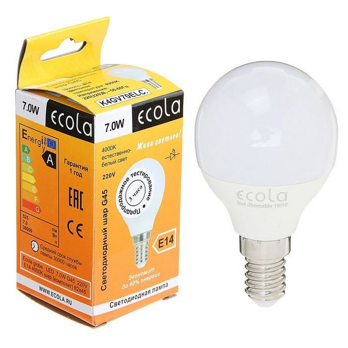 Ecola globe LED 7,0W G45 220V E14 4000K шар (композит) 82 x 45.