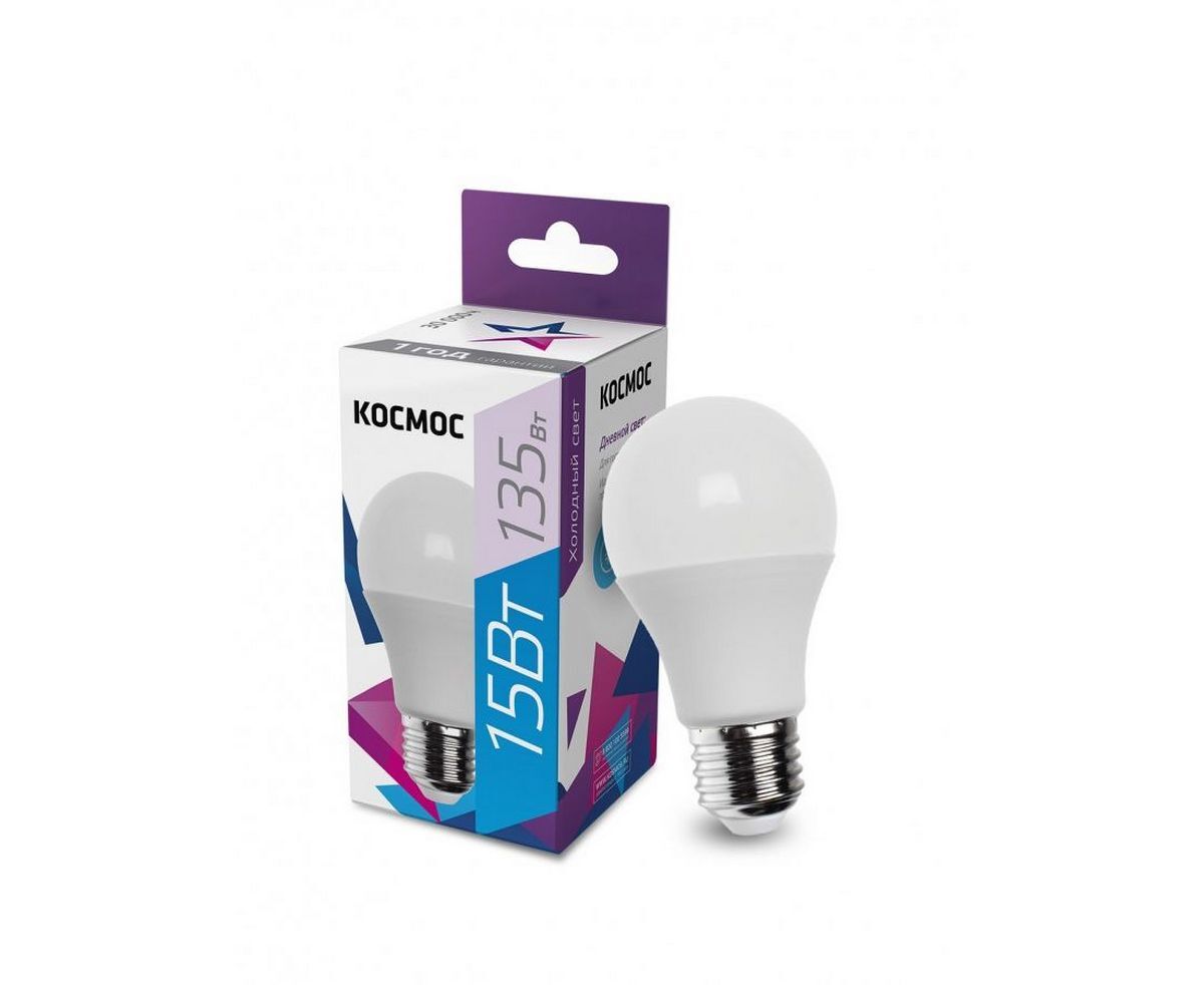 Светодиодная лампа Космос А60 15W 220V E27 6500K применяется для общего освещения. Имеет длительный срок службы 30000 ч.