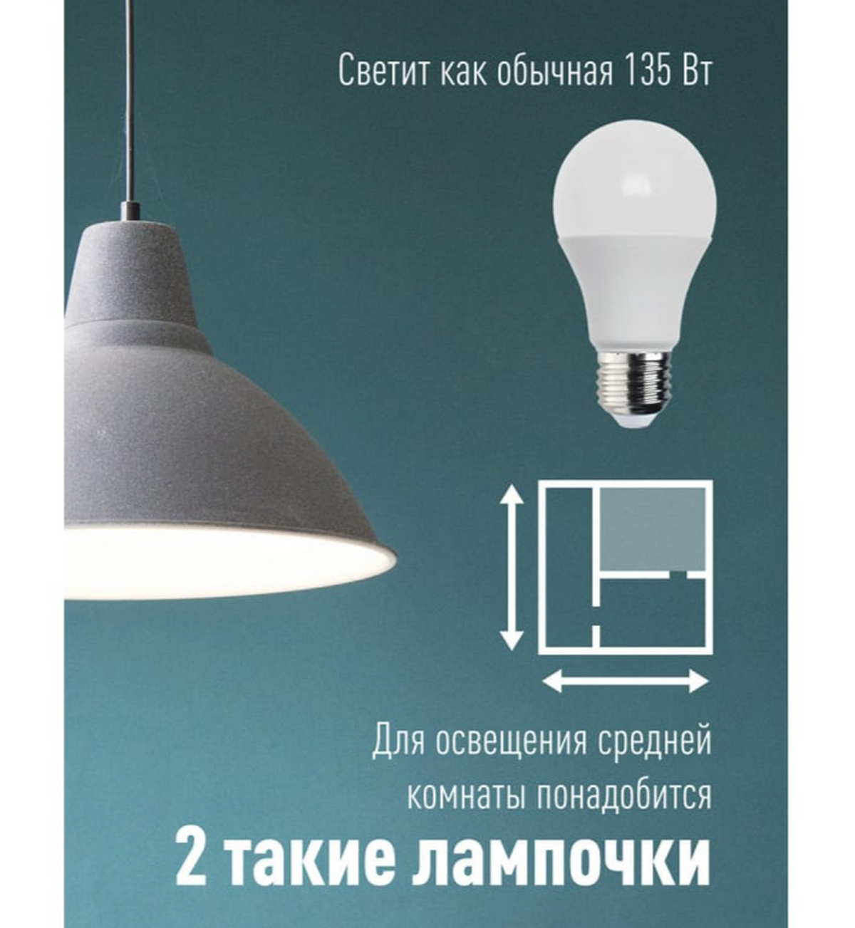 Лампочка в форме стандартной груши. Мощность 15 Вт — аналог лампы накаливания 135 Вт.
