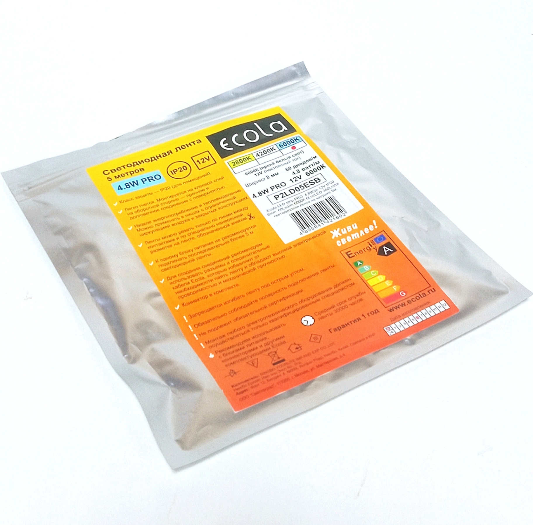 Ecola LED strip PRO 4,8W/m 12V IP65 8mm 60Led/m 4200K 6Lm/LED 360Lm/m светодиодная лента на катушке 5м.