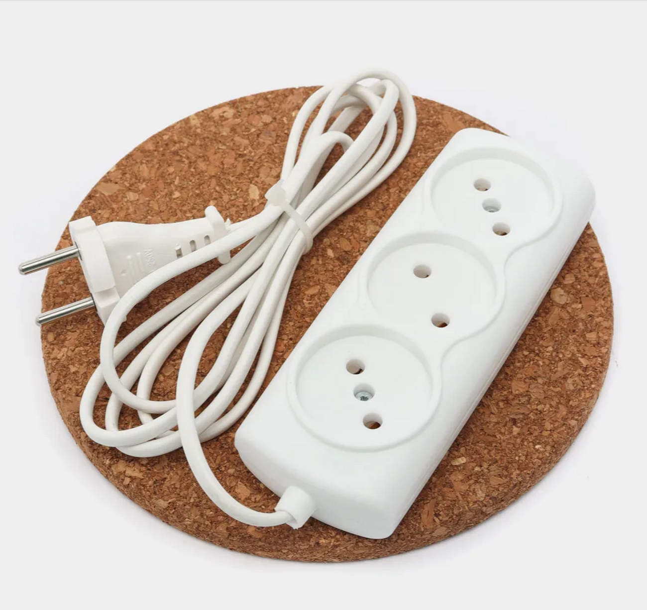 Универсальный удлинитель Engy P16-010 без заземления. Оснащен 3 розетками для подключения сразу нескольких электроприборов.