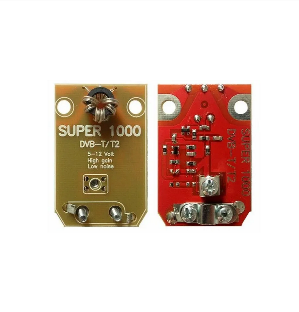 Усилитель SUPER 1000 разработан специально для цифрового телевидения стандарта DVB-T/T2. Его отличает стабильный прием как «слабых» так и «сильных» сигналов, высокий равномерное усиление по всему частотному диапазону, широкий диапазон питания от 5 до 12 В, удобное и простое подключение с помощью зажима.Диапазон рабочих частот - 470 - 862 дБ, Коэффициент усиления - 32 - 36 дБ, Входное сопротивление - 300 Ом,Выходное сопротивление - 75 Ом,Размер платы - 50 х 36 мм.