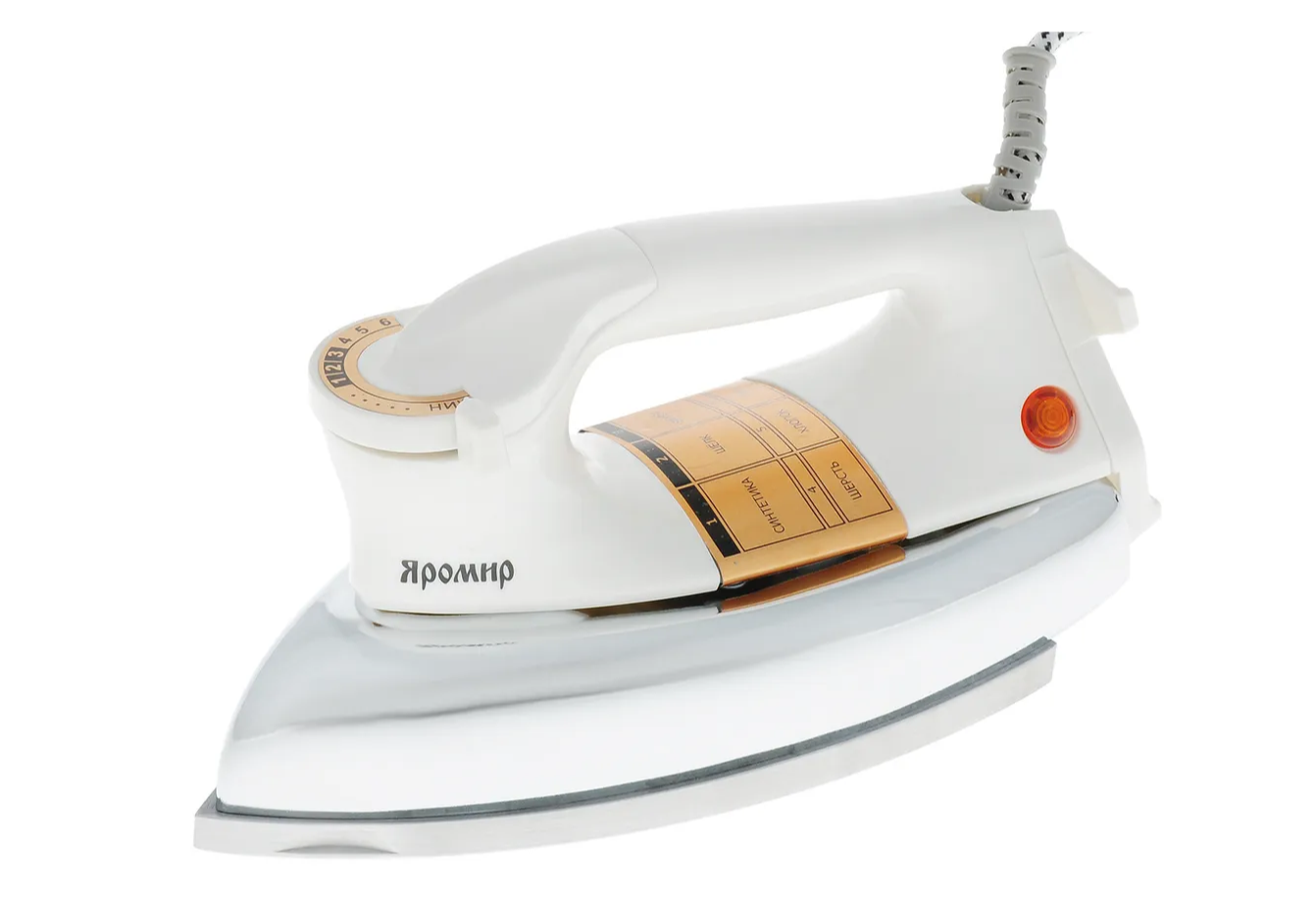 Утюг ЯРОМИР ЯР-003 – это безупречно отглаженные белье и одежда. Это прибор мощностью в 1400 Вт, благодаря которой его алюминиевая подошва быстро нагревается до нужной температуры. С такой подошвой утюг легко и плавно скользит по ткани любой фактуры, не оставляя следов, не оставляя разводов и пятен. ЯРОМИР ЯР-003 позволяет вам регулировать температуру нагрева подошвы, чтобы вы могли выбрать оптимальную для различных материалов – от деликатных до трудно поддающихся глажению. Идеален для портных.