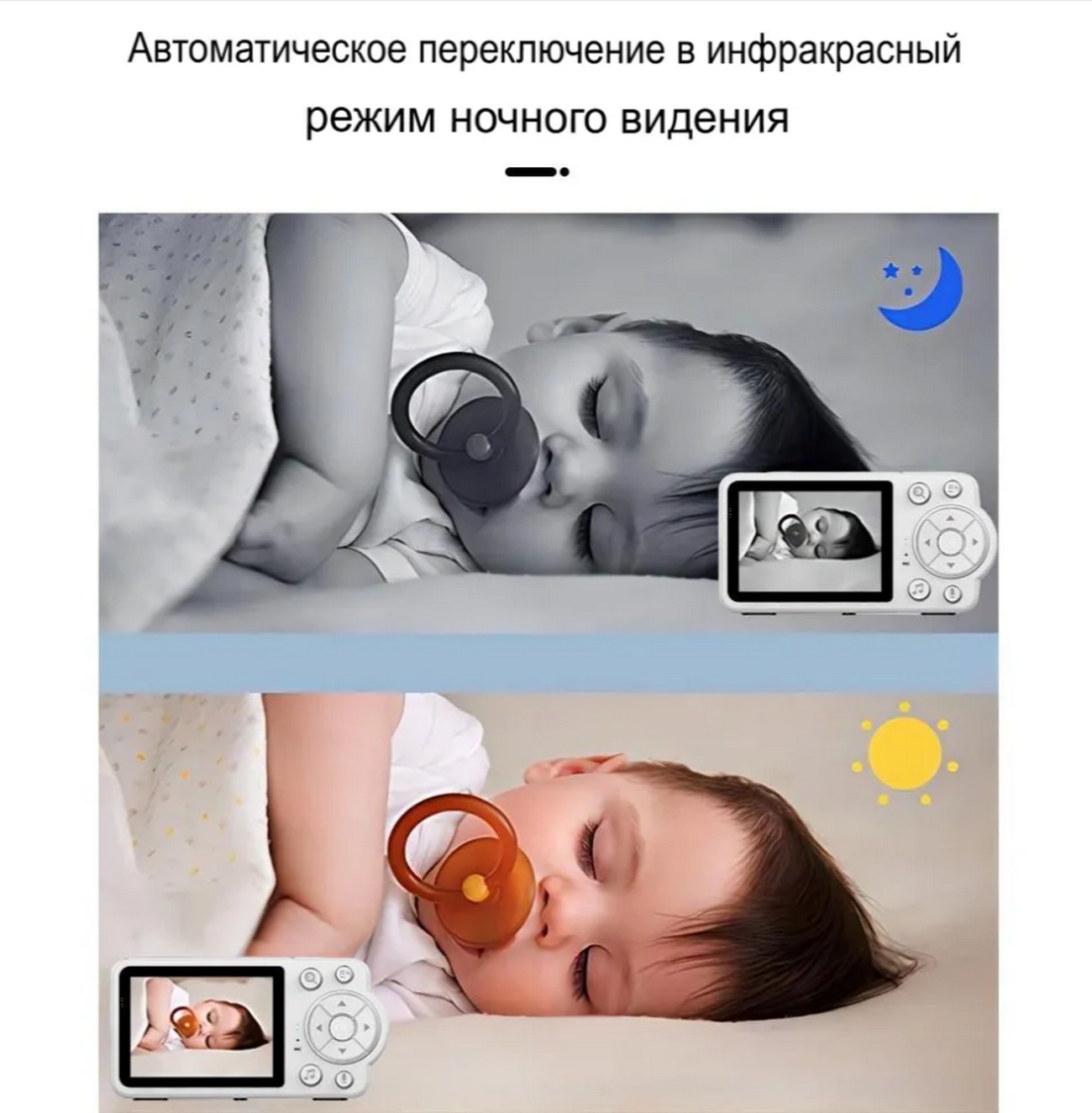 инфракрасное ночное видение и функцию контроля температуры, которые помогают поддерживать безопасную и спокойную обстановку для вашего ребёнка. Удобное управление и простой интерфейс позволяют легко настраивать параметры.