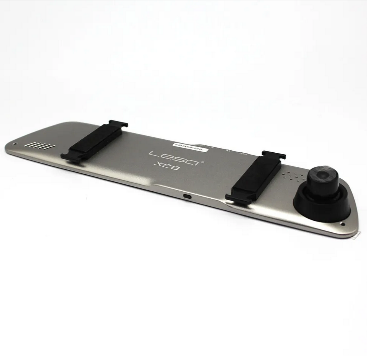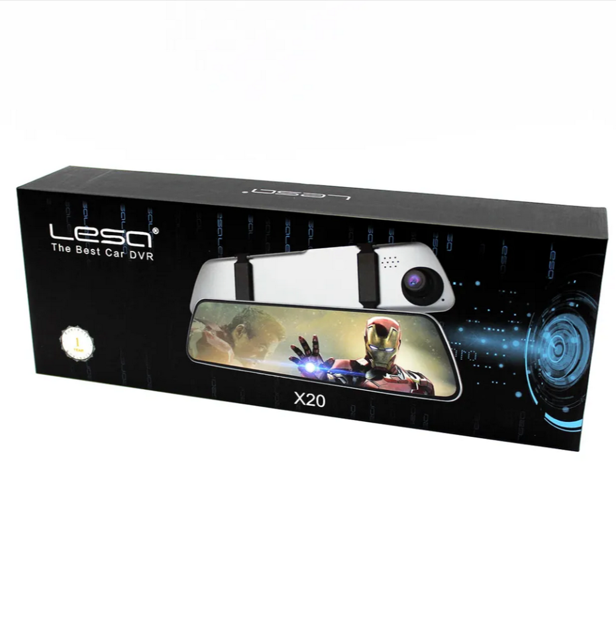 Видеорегистратор в зеркале с двумя камерами LESA X20 — современное решение для всестороннего контроля дорожной ситуации. Устройство монтируется поверх штатного зеркала заднего вида, не загораживает обзор и соответствует требованиям ПДД. Ведёт одновременную запись с двух камер: фронтальная (угол обзора 140°, разрешение 1920×1080 пикс., 30 к/с) фиксирует обстановку впереди, а выносная камера заднего вида (угол обзора 120°, разрешение 1280×720 пикс., 30 к/с) активируется при включении задней передачи. Цветной ЖК‑дисплей 3,5″ отображает картинку в реальном времени и позволяет просматривать записи; при выключенном экране устройство работает как обычное зеркало. Встроенный G‑сенсор защищает важные файлы от перезаписи при ударе или резком торможении, а циклическая запись автоматически освобождает место на карте памяти (поддерживаются MicroSD до 64 ГБ). Дополнительно доступны съёмка фото в формате JPEG (5 МП), мультиязычное меню (включая русский) и разъём MiniUSB для питания. В комплект входят: видеорегистратор, выно