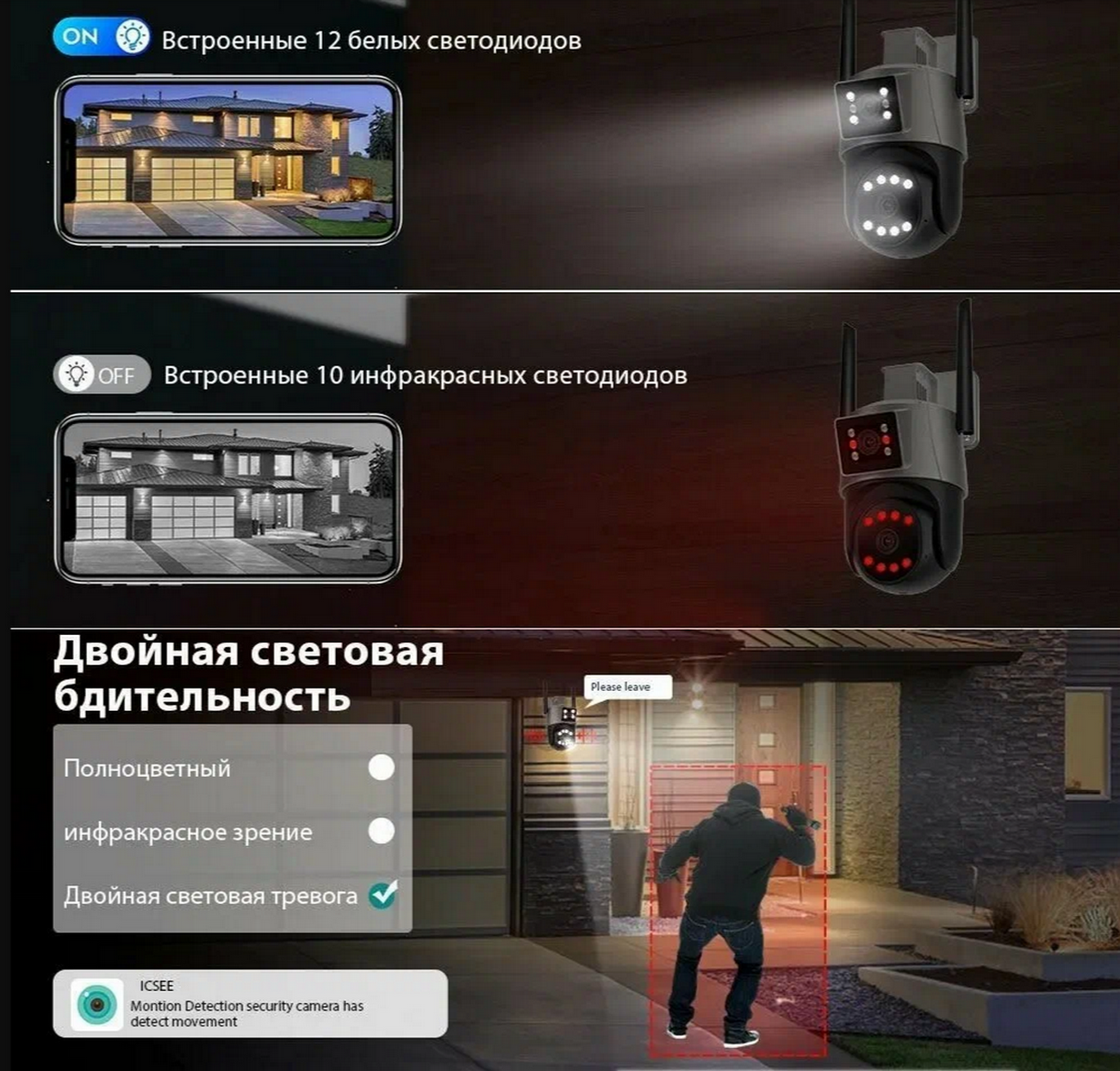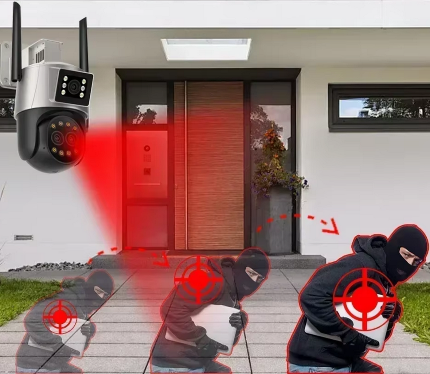 Wi‑Fi камера видеонаблюдения FaizFull FT140 — высокотехнологичное устройство с тремя объективами и суммарным разрешением 9 Мп для всестороннего контроля территории. Обеспечивает панорамный обзор без «слепых зон» благодаря трём независимым матрицам и объективам с углом охвата до 180° каждый. Поддерживает Full HD‑видео (1920 × 1080) с частотой 25 к/с, передачу потока через Wi‑Fi (2,4 ГГц) и удалённое управление через мобильное приложение. Встроенные ИК‑фильтры и ИК‑подсветка (до 30 м) гарантируют чёткое изображение днём и ночью.