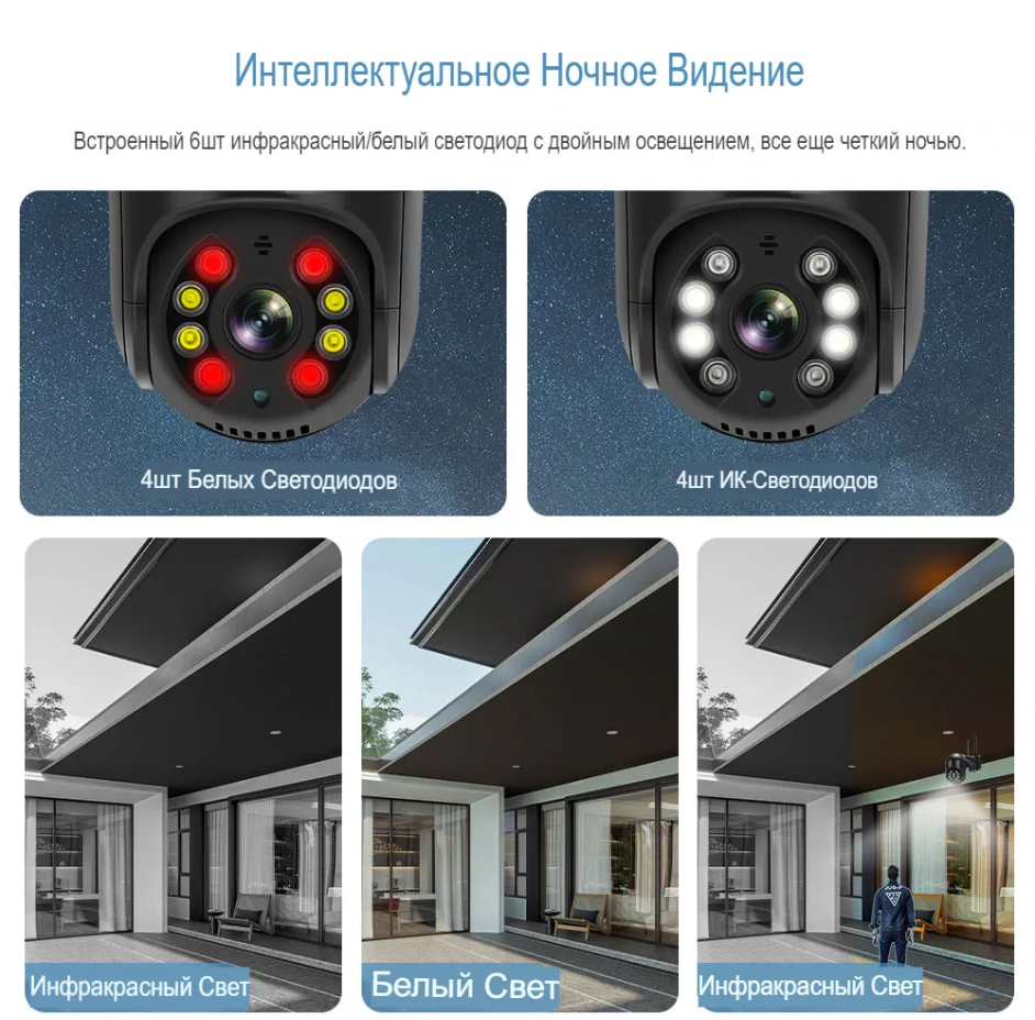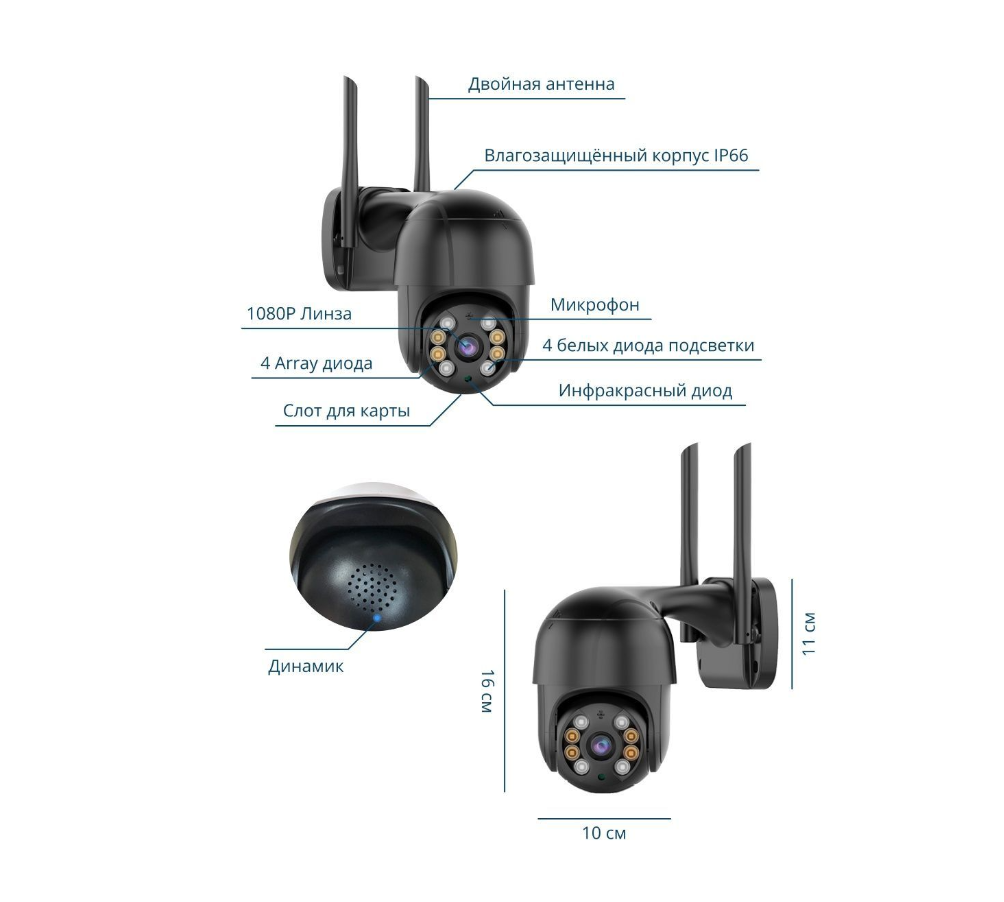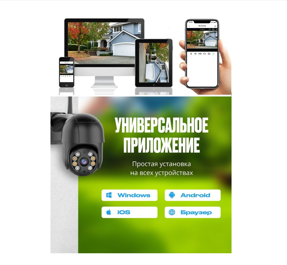 Бюджетная водонепроницаемая камера с углом обзора 270 градусов, встроенным инфракрасным датчиком и поддержкой дистанционного управления со смартфона. В аппарат предустановлены датчик и микрофон. Благодаря поддержке Wi-Fi прибор автоматически сохраняет ролики в облачное хранилище. Со смартфона можно просматривать запись с камеры в реальном времени. Светодиодная подсветка. Инфракрасная подсветка для ночного видеонаблюдения. Возможность автоматического отслеживания и реагирования. Доступ к камере в любой точке мира через приложение (доступно для Android, iPhone, Windows). Получайте уведомления о событиях в реальном времени на ваш смартфон.