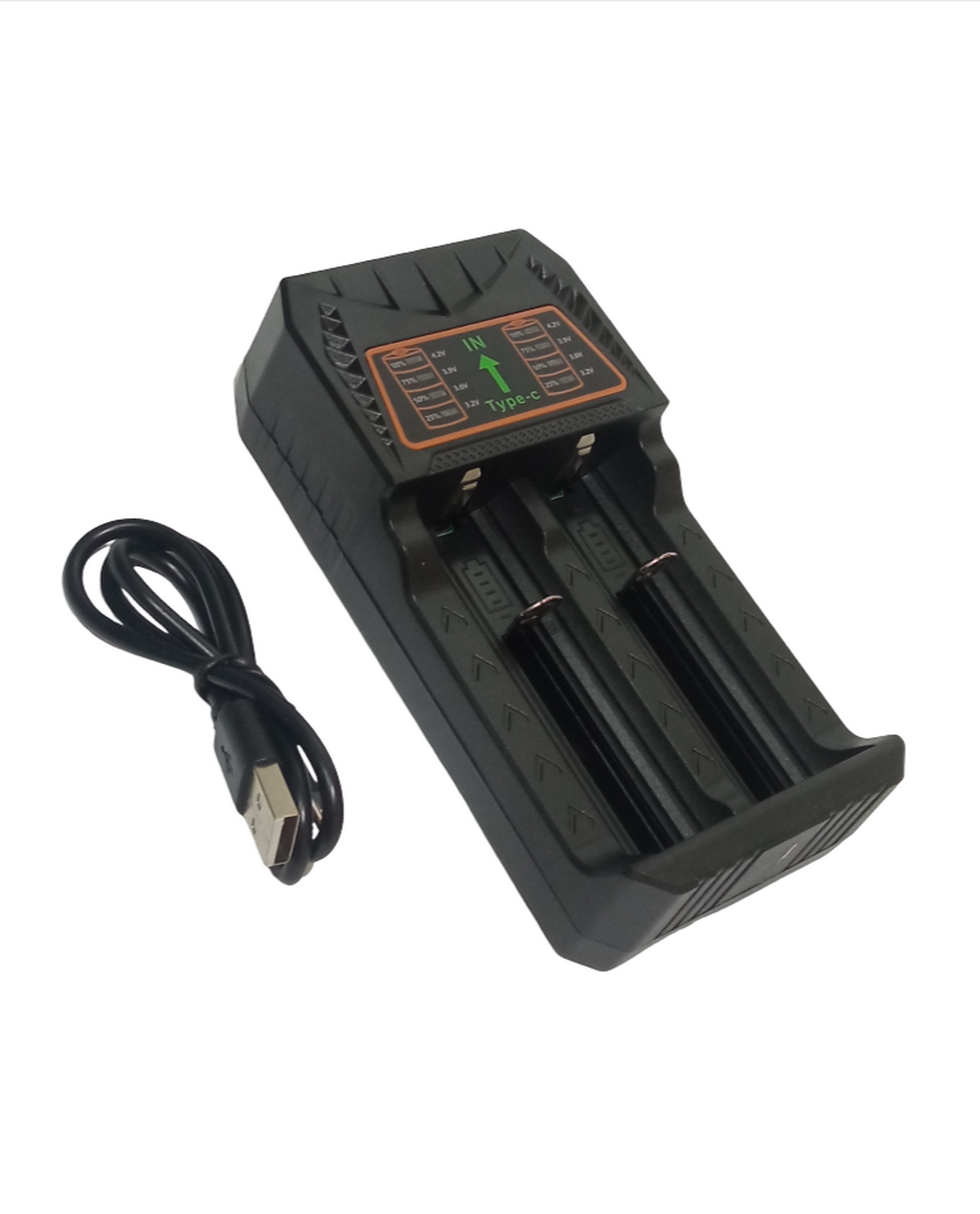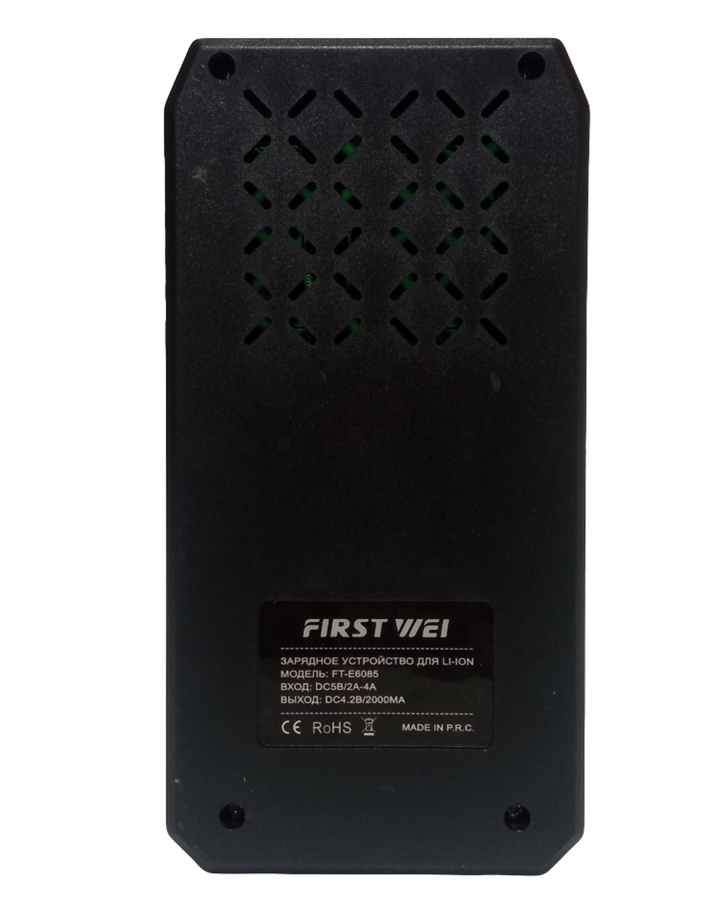 Зарядное устройство FirstWei FT‑E6085 для аккумуляторов 18650 с питанием через USB — удобное и безопасное решение для зарядки литий‑ионных аккумуляторов различных типоразмеров 18650, 21700, 26650, 14500, 16340. Имеет два независимых слота с максимальным суммарным током заряда до 2 А (до 1 А на слот), выходное напряжение — 4,2 В; оснащён индикатором уровня заряда для каждого аккумулятора, защитой от перезаряда, переразряда, короткого замыкания и перегрева; питание осуществляется через USB‑порт (кабель в комплекте); компактные размеры (130 × 70 × 45 мм) и эргономичный дизайн обеспечивают удобство использования дома или в поездках; в комплект входят: зарядное устройство, USB‑кабель, упаковка.