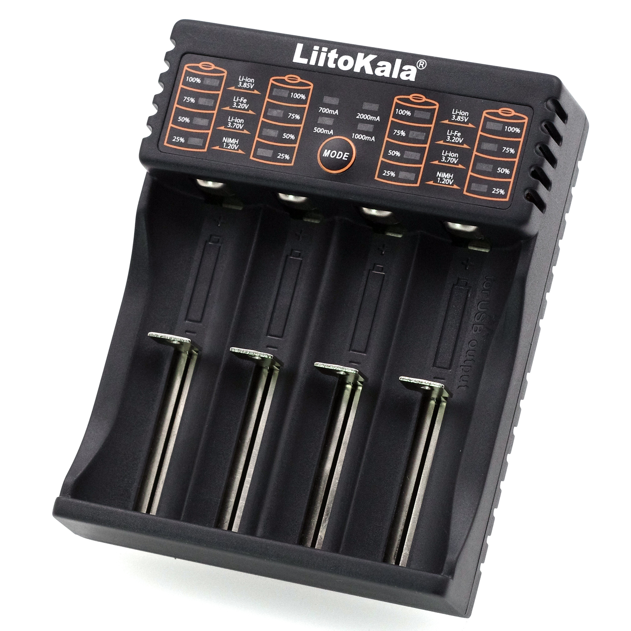 Заряжает аккумуляторы Ni-MH, NiCd: AA, AAA, C. Li-ion, LiFePO4: 18650, 18490, 18350, 17670, 17500, 16340 (RCR123), 14500, 10440.